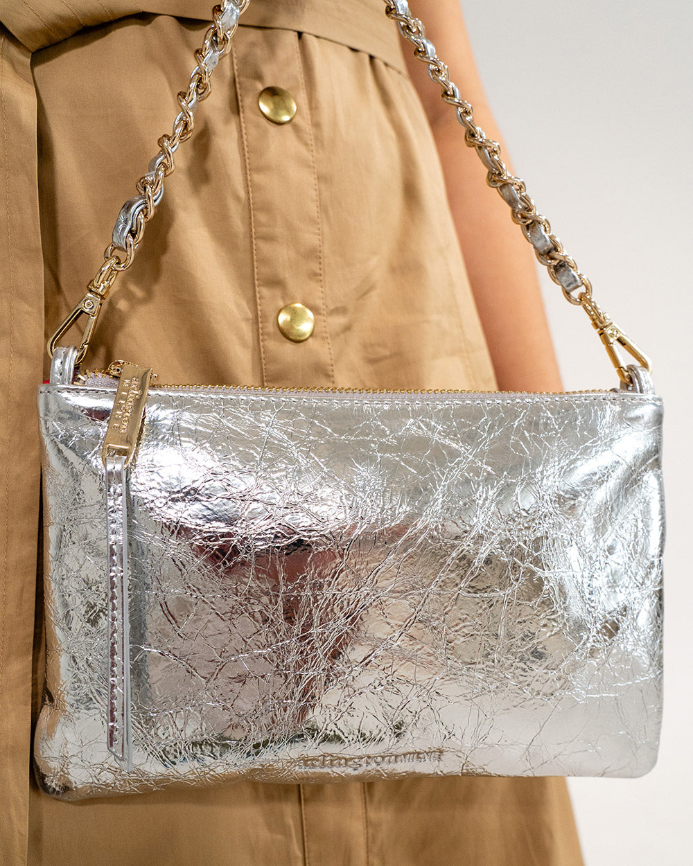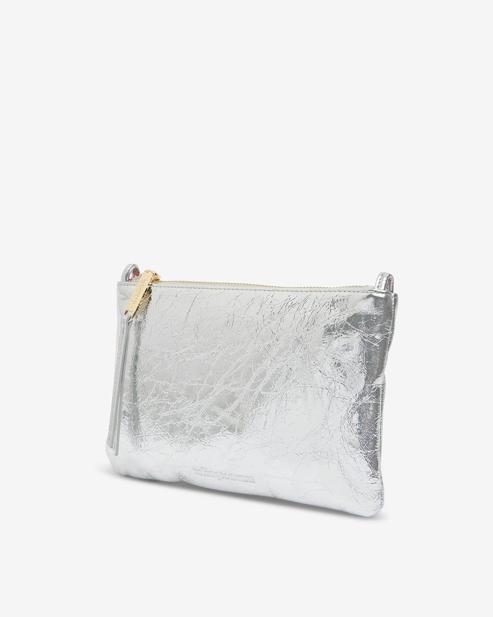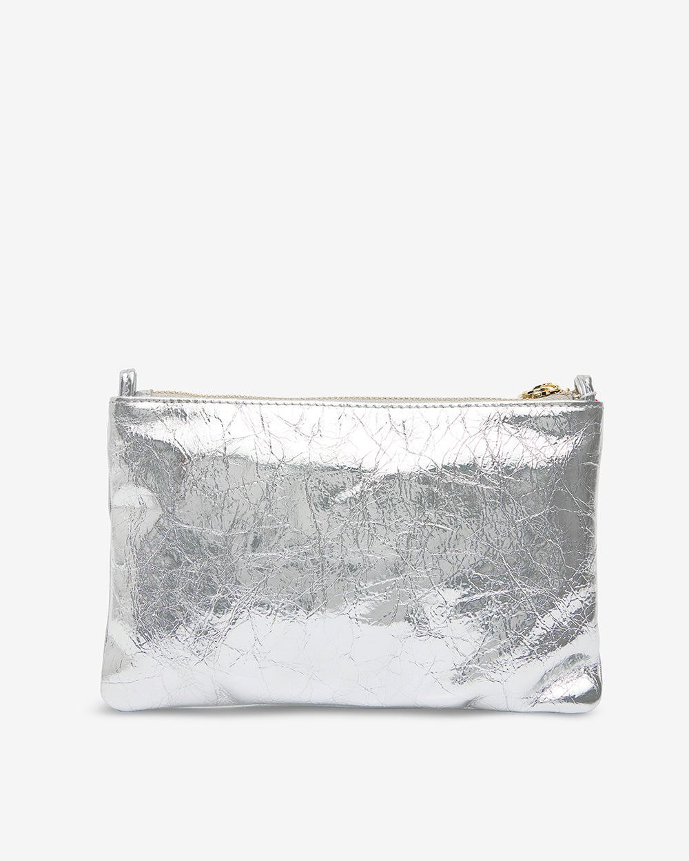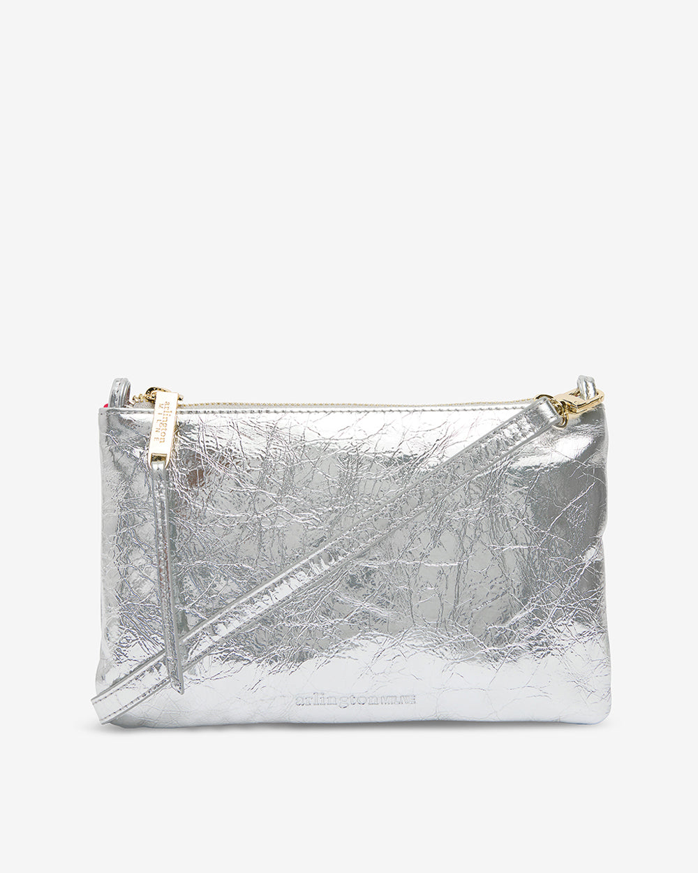 The Molly Crossbody is crafted from premium pebble leather. The soft bodied, compact crossbody bag features light gold hardware, an embossed logo and two strap options. The top zipper opens to an ample centre compartment featuring Arlington Milnes signature hot pink lining.