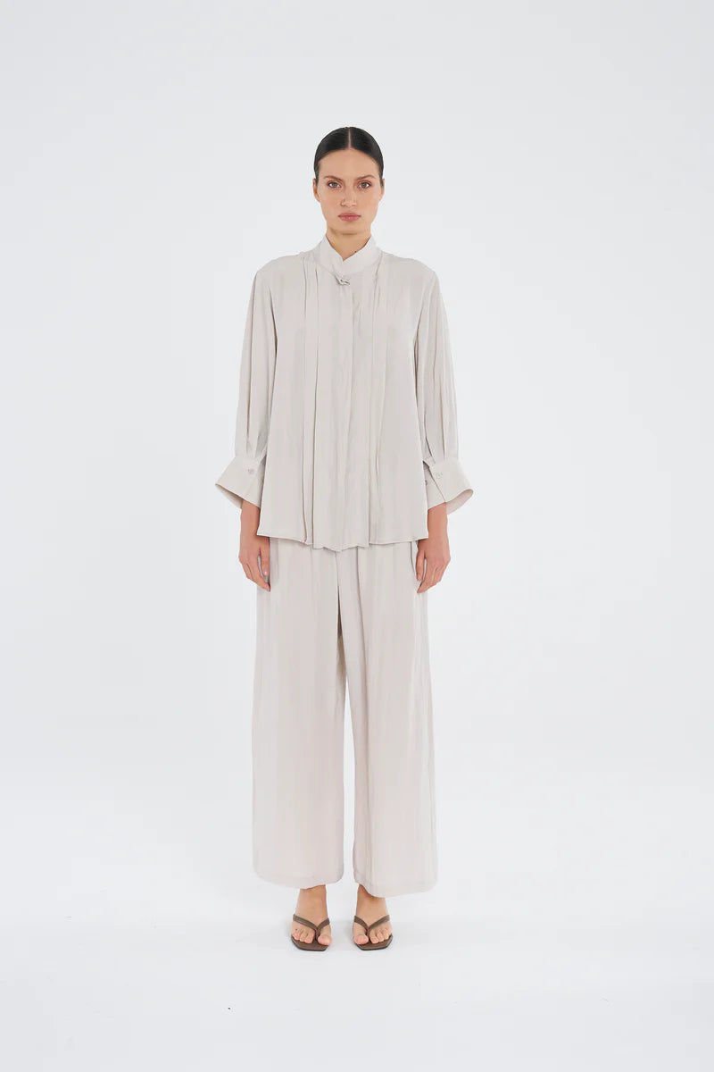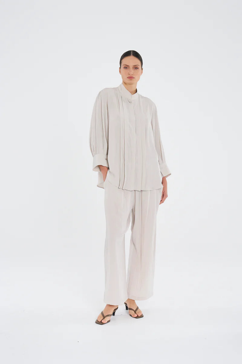 Crafted from Mela Purdie's classic Mache, a fine Denier technical weave with an airflow finish. The Folded Blouse is a elevated staple for every wardrobe, featuring a folded pleat detail down the front panels and fluid shirt sleeve.