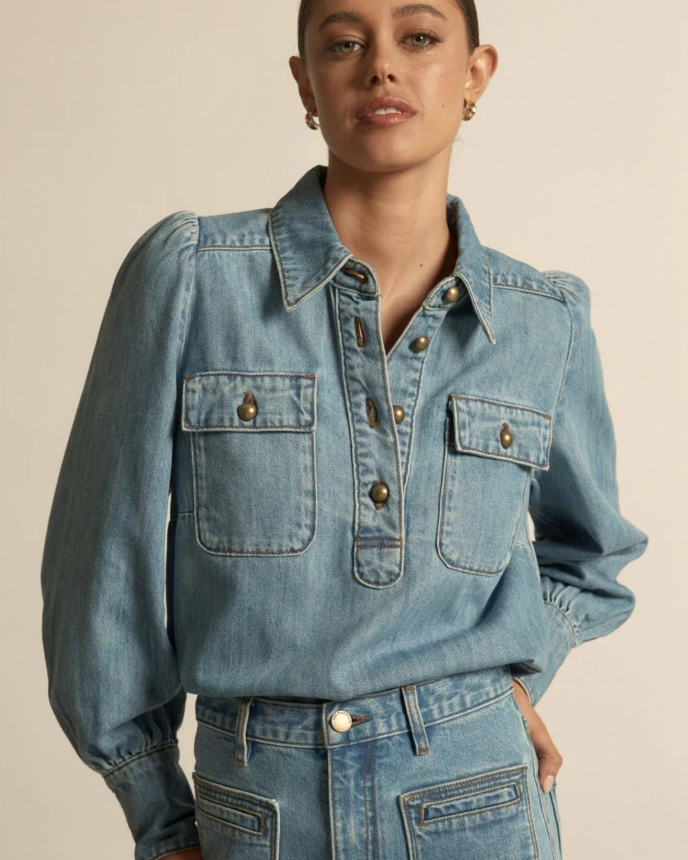 • button-through silhouette with considered shell buttons