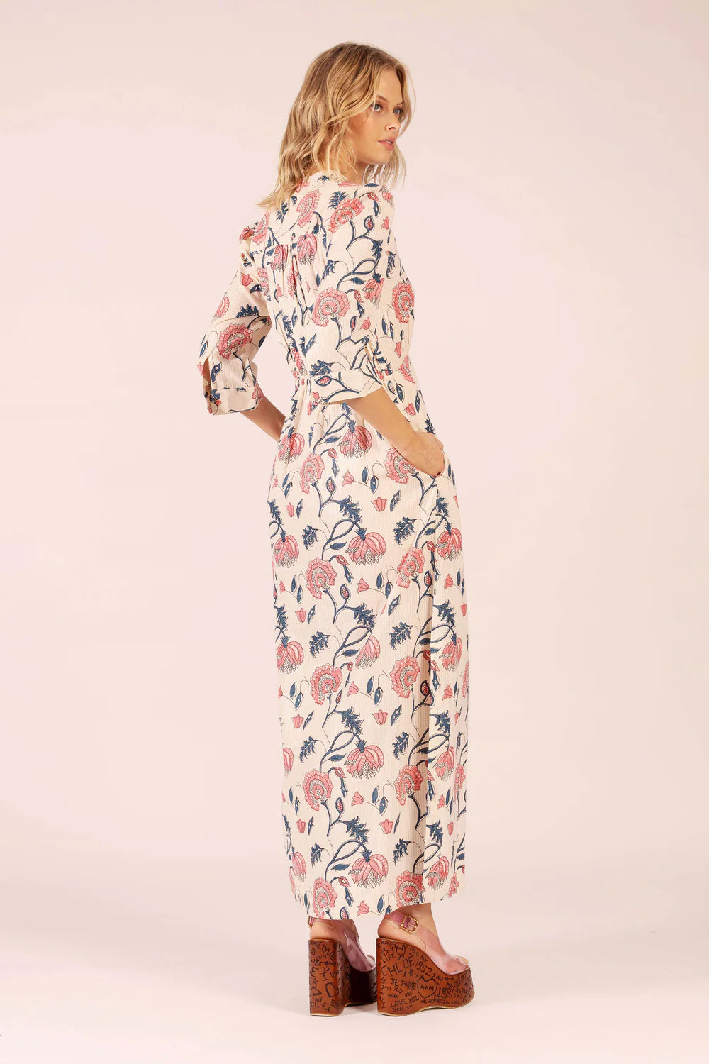 Embrace timeless elegance with the Maxi Cotton Dress in the luxe Capri Pink Blue Lurex Print. This stunning dress features a vibrant floral pattern that exudes charm and sophistication. Crafted from premium cotton, it ensures maximum comfort and breathability, making it an ideal choice for both casual and special occasions.