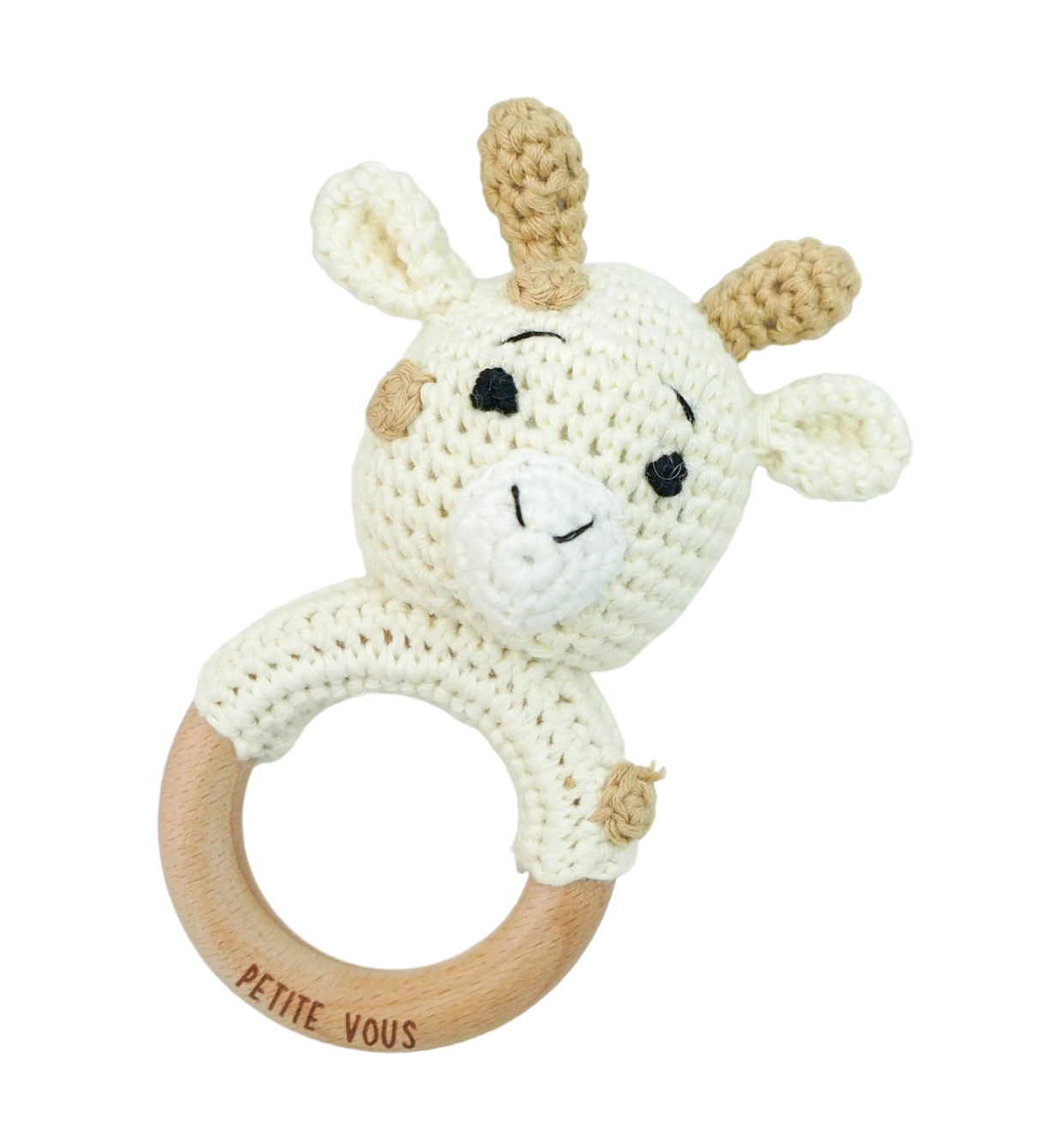 100% Cotton Crochet Ring Rattle - Percy Giraffe