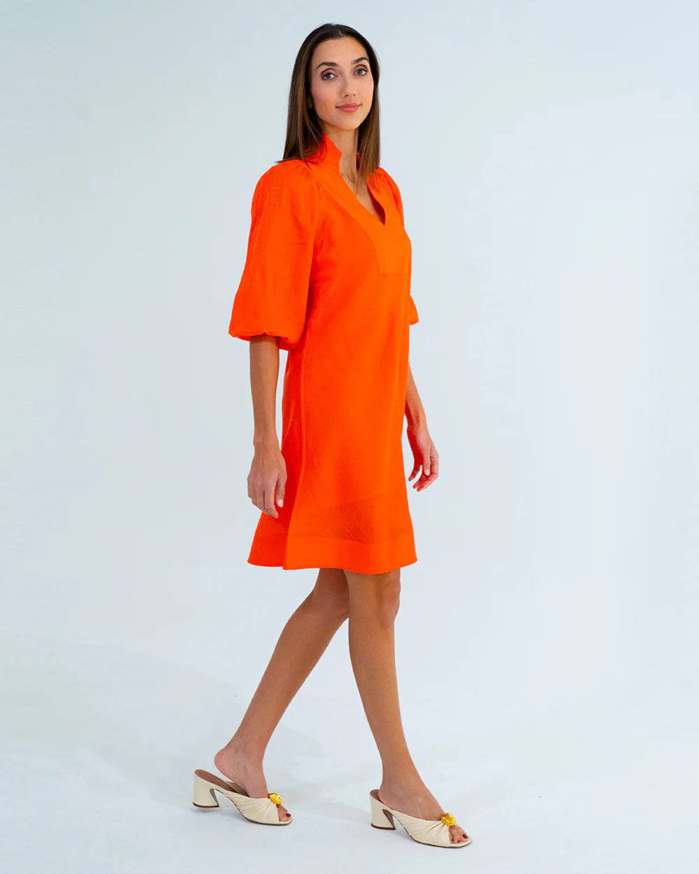 Meet your new go-to dress! The River Mini Dress flows effortlessly with a flattering bias cut and a V-neck with stand-up collar. The relaxed raglan sleeves with elastic cuffs add a little playful volume, while the wide hem band keeps things structured. Comes with a slip for easy, comfy wear. This dress is perfect to dress up with heels or keep casual with a pair of boots.