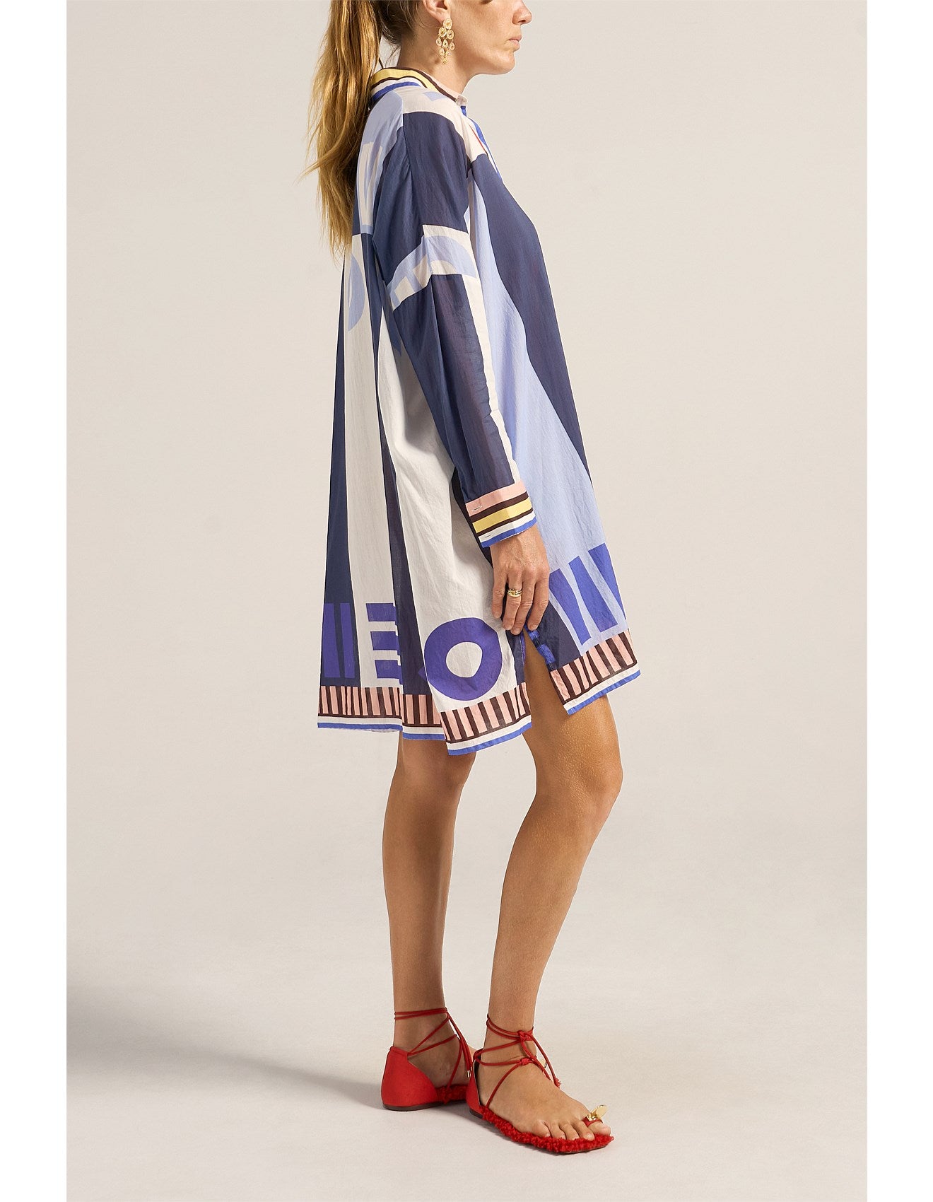 The Artemis Shirtdress is an oversized, relaxed silhouette crafted from our Blue Sarong Voile, a soft, lightweight cotton in a vibrant mix of blue and white tones. Falling to mid-thigh, it features a classic collared neckline, long cuffed sleeves and buttons down the front. Effortlessly chic and easy to wear, the Artemis Shirtdress embodies casual elegance with a touch of statement colour. Pair it with the Clio Pants or your wear it over your swimmers.