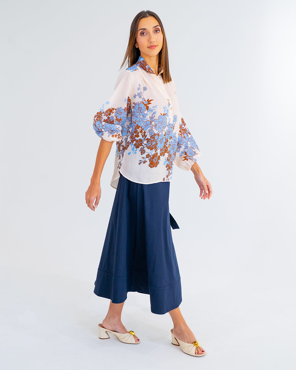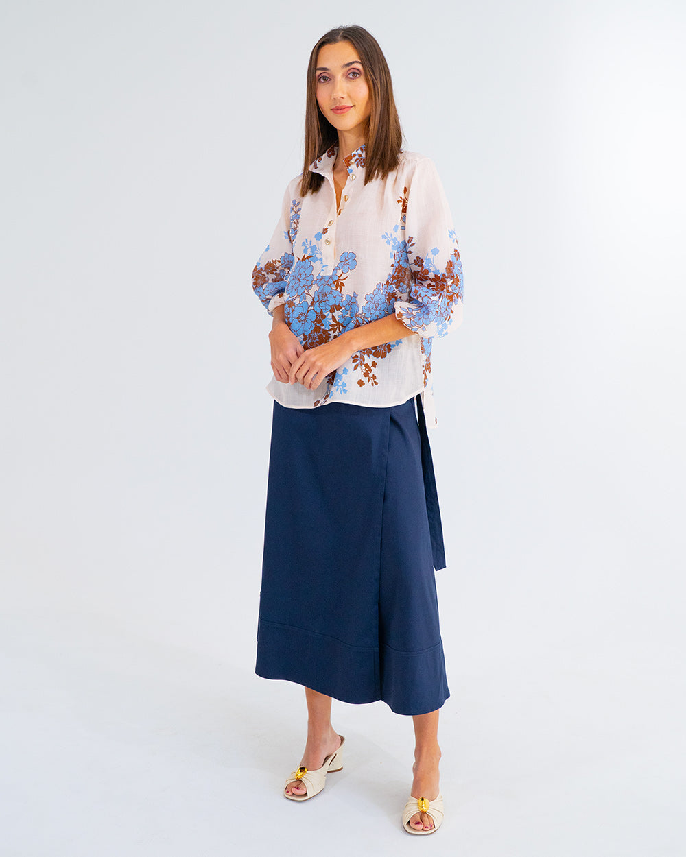 The Emerson Blouse is a versatile style that instantly lifts your look. Made from soft ramie with a silky feel, it’s perfect for warm days or light layering. Featuring an exclusive romantic floral print, a stand-up collar and button-through front, it’s both chic and easy to wear. Gentle gathers and a shoulder yoke add a touch of feminine flair.