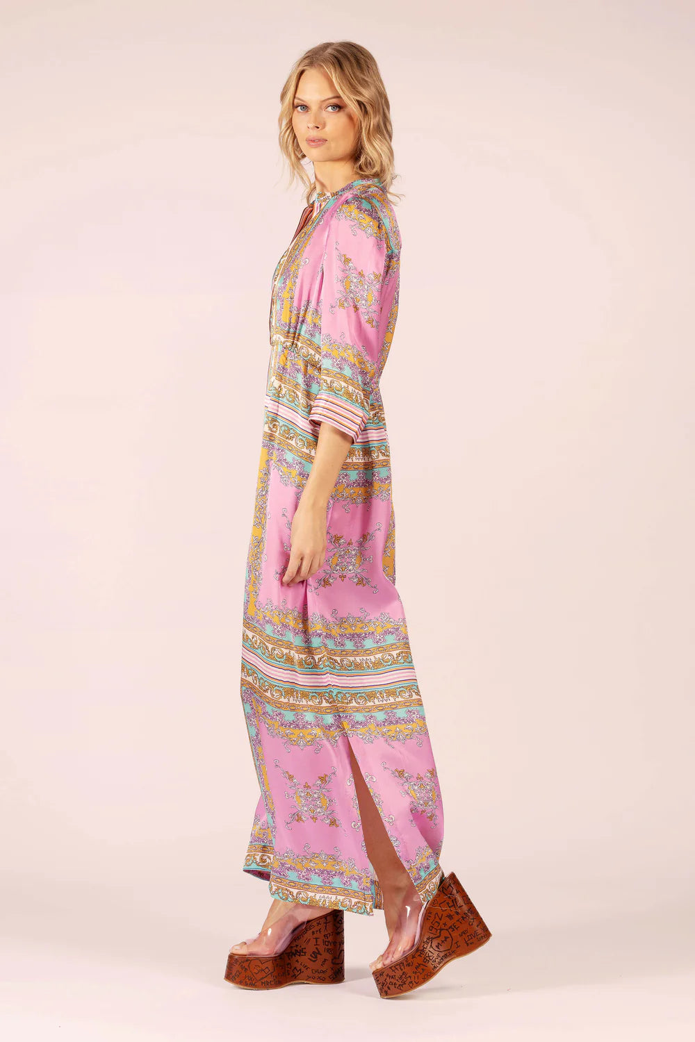 Embrace timeless elegance with the best selling Mary Silky Long Dress in Aria Pink Blue. Made from luxurious 100% satin silk, this dress offers both comfort and sophistication, making it a must-have addition to your wardrobe.