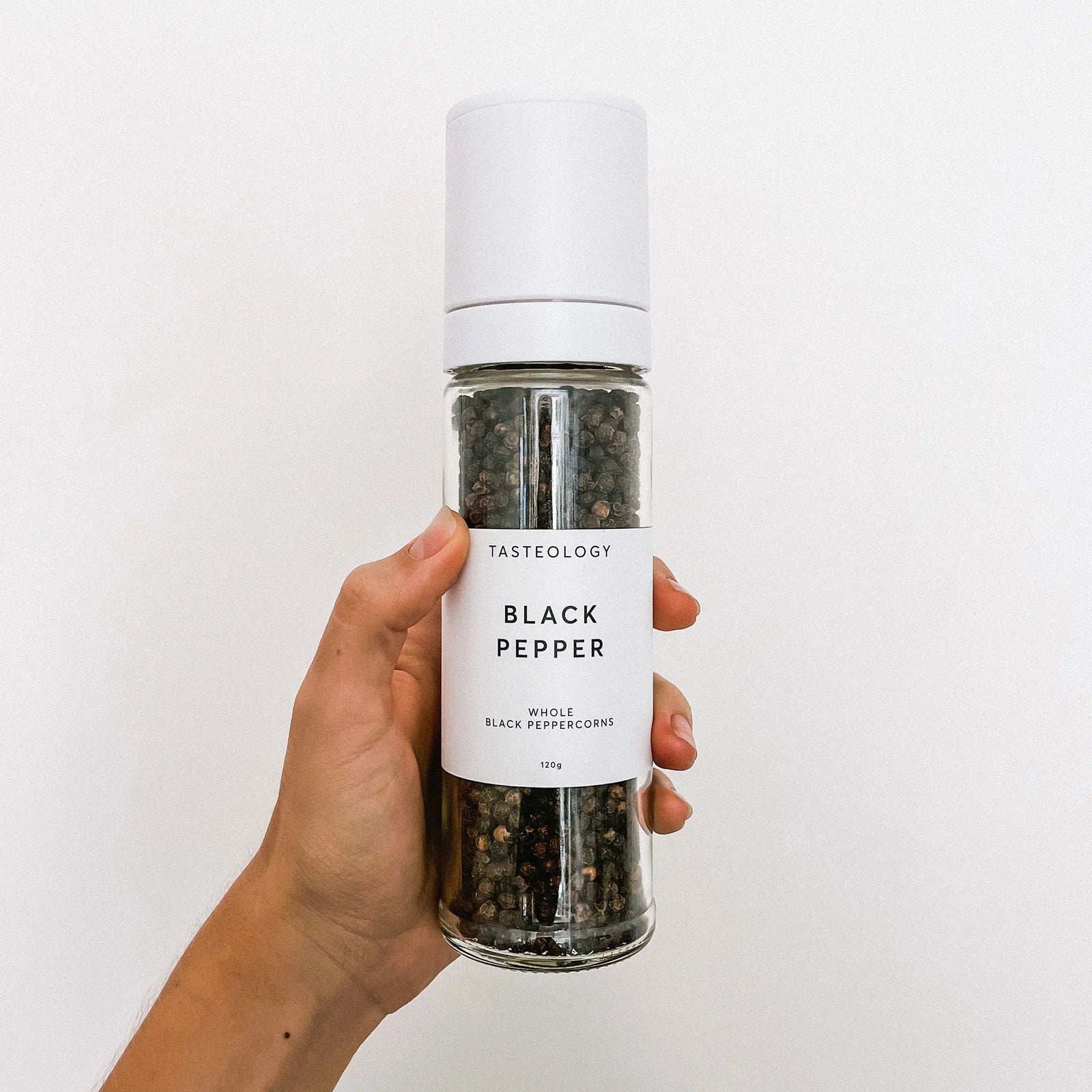 Tasteology’s Black Pepper grinder features premium peppercorns grown and harvested in Vietnam, then locally dried and sorted before arriving in Australia. A kitchen essential, it delivers a bold, pungent kick that elevates the flavour of any dish.